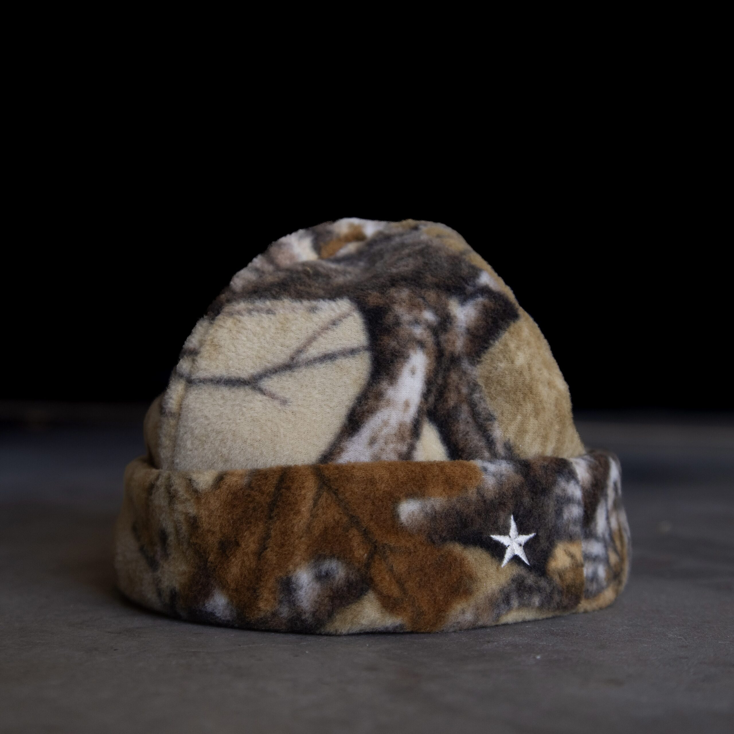 Reversible warm fleece beanie with our signature embroidered star